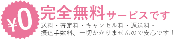 送料・査定料・キャンセル料・振込手数料・返送料など料金は一切かかりません。